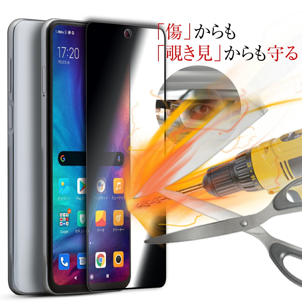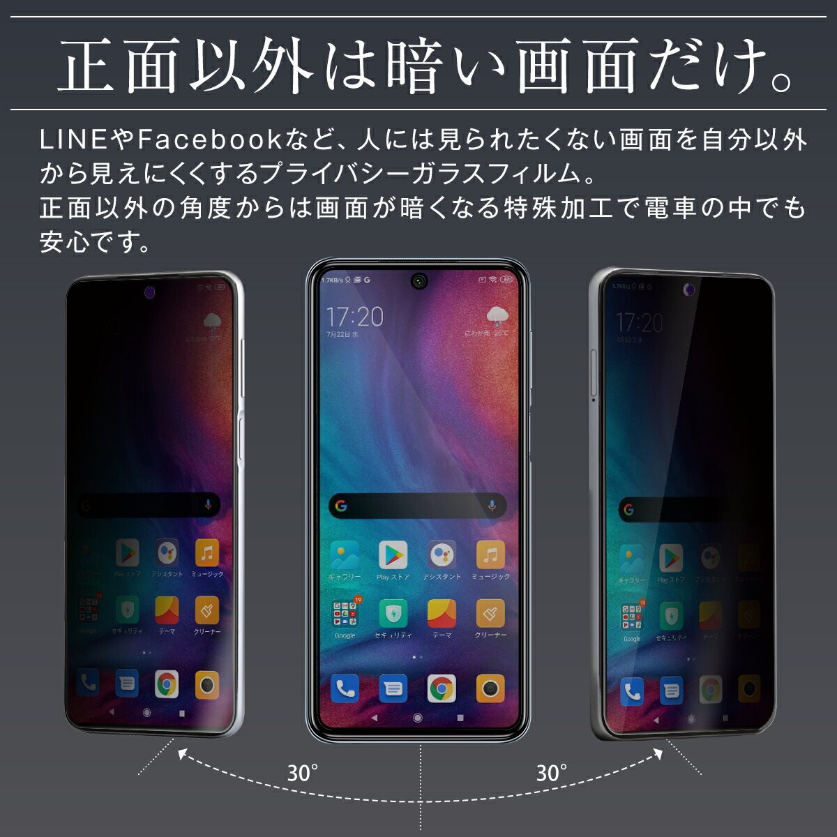 LINEやfacebookなど、人には見られたくない画面を自分以外から見えにくくするプライバシーガラスフィルム。