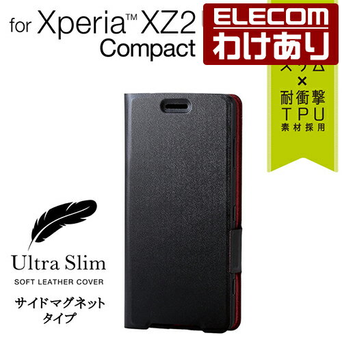【訳あり】エレコム Xperia XZ2 Compact (SO-05K) ケース 手帳型 ソフトレザーカバー 薄型 マグネット付 ブラック:PD-XZ2CPLFUBK【税込3240円以上で送料無料】[訳あり][ELECOM:エレコムわけありショップ][直営]